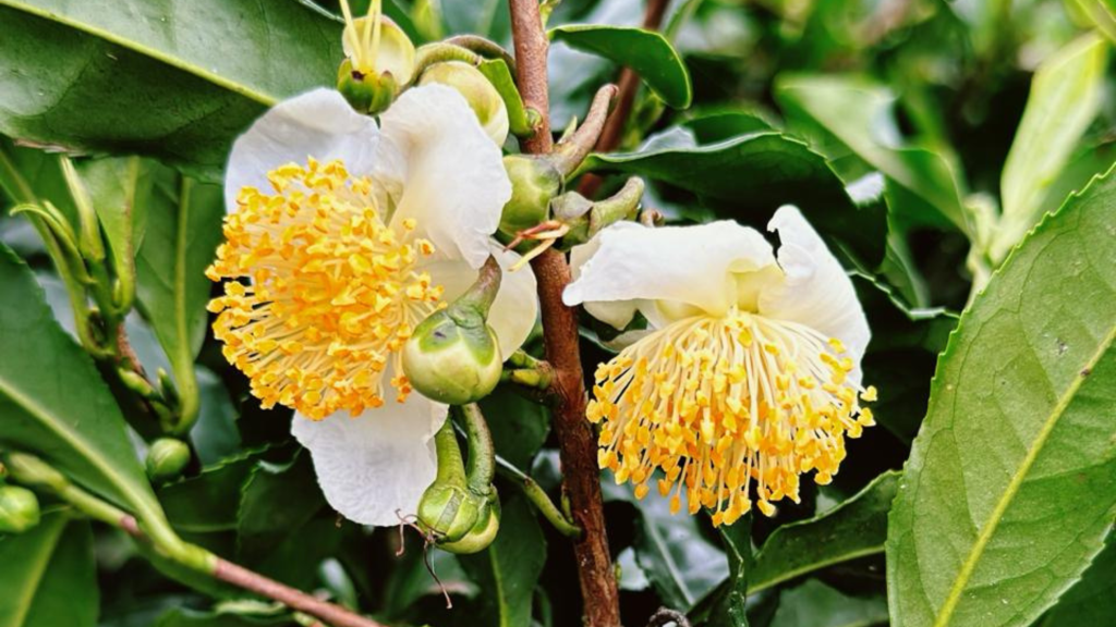 Do ponto de vista da botânica, a flor cumpre uma função essencial: é ela que garante a reprodução da espécie. Carrega os órgãos reprodutivos, atrai polinizadores e dá origem às sementes, que podem ser usadas para gerar novas mudas ou até mesmo para a extração de óleo… Algo pouco explorado pela indústria tradicional do chá. Assim, a flor da Camellia Sinensis é fundamental para a vida da planta, mas não participa diretamente da infusão que conhecemos.
